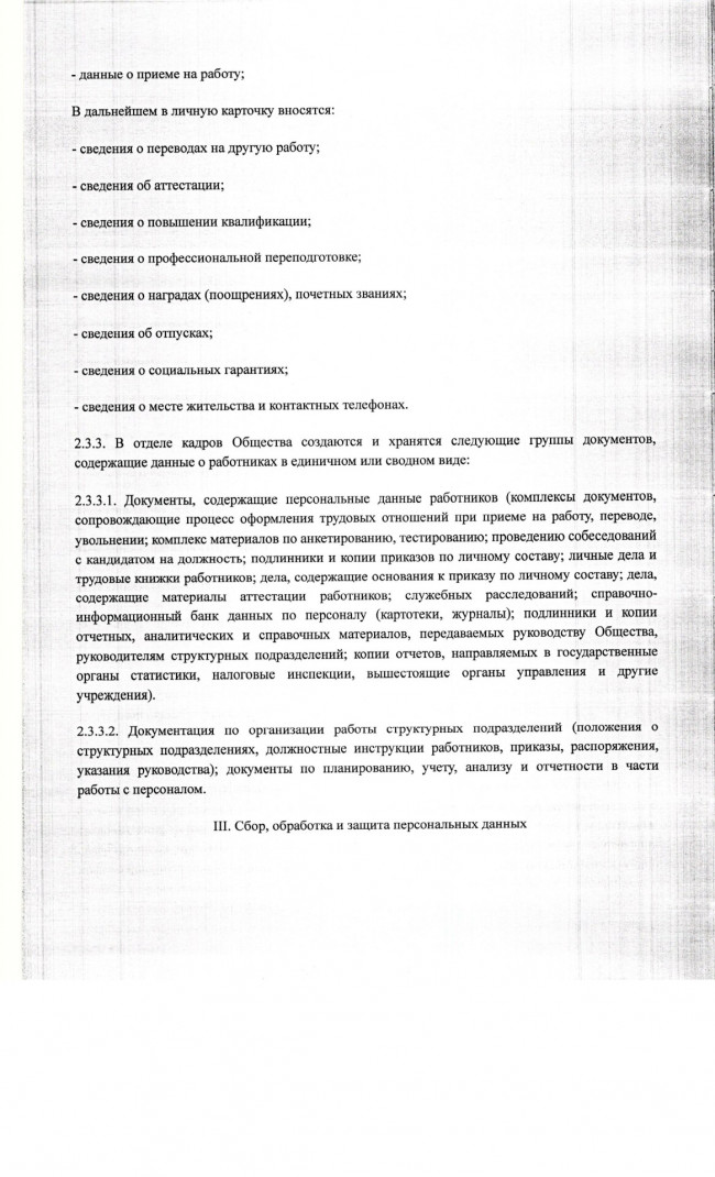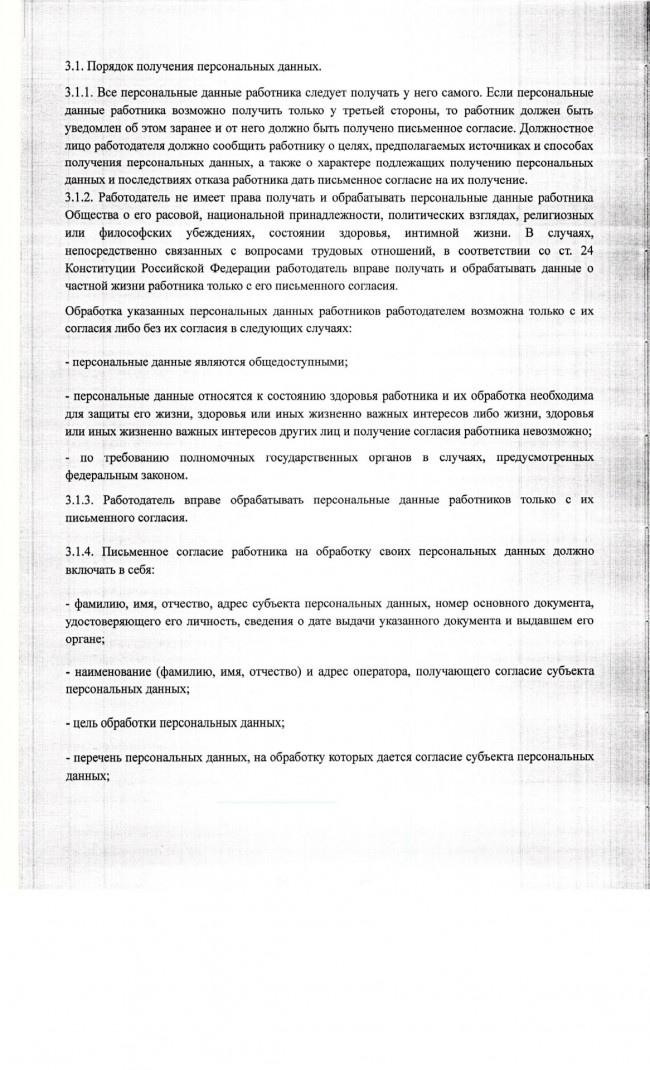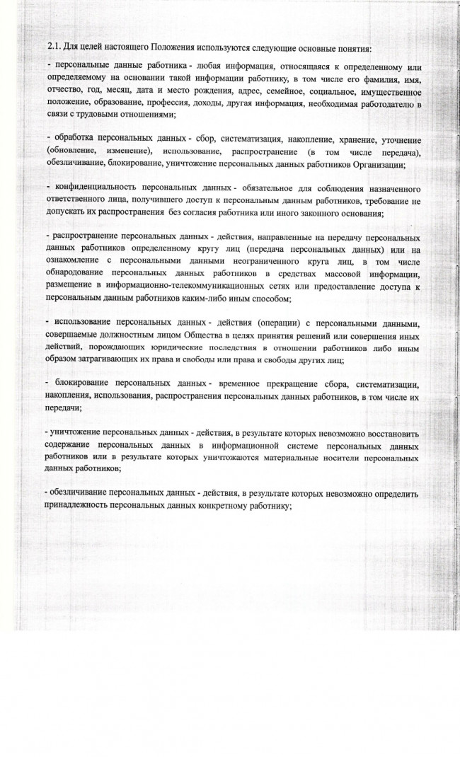 ПОЛОЖЕНИЕ О ПЕРСОНАЛЬНЫХ ДАННЫХ