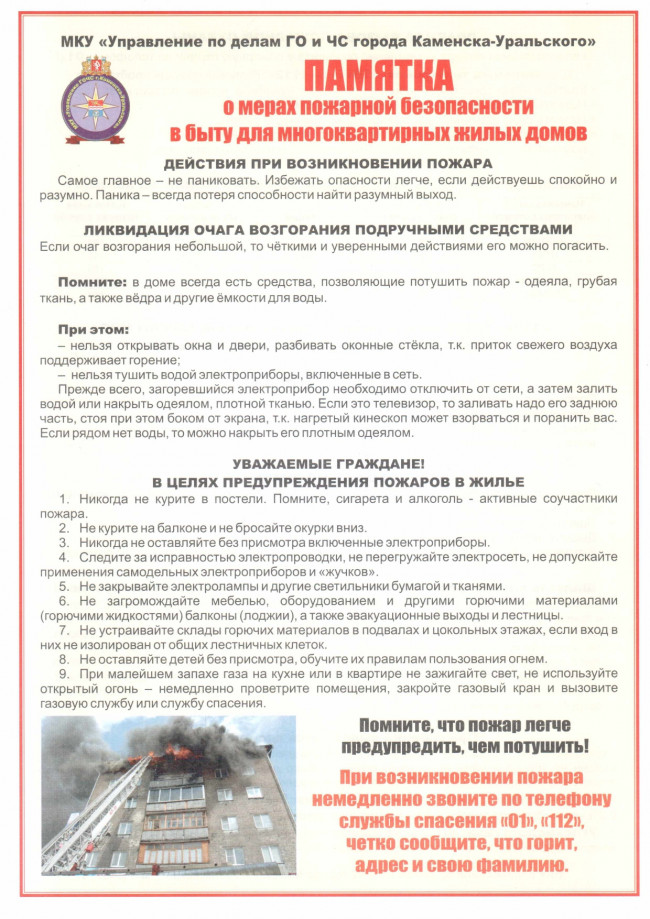 В связи с продолжающимся ростом количества людей, погибших на пожарах в сравнении с аналогичным периодом прошлого года на территории Каменска-Уральского, размещаем агитационные листовки по пожарной безопасности.