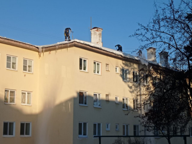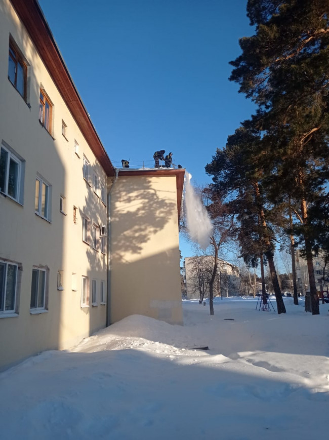 Стартовали работы по каждому из домов в полдень 13 февраля. Продолжались до семи часов вечера. Но за это время удалось ликвидировать снег только наполовину. 14 февраля уборка продолжилась.