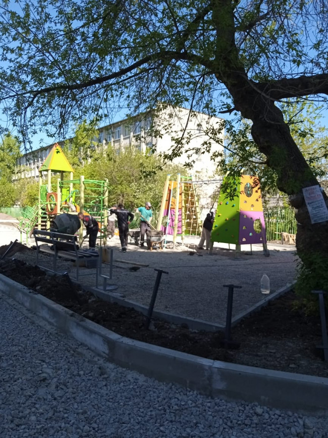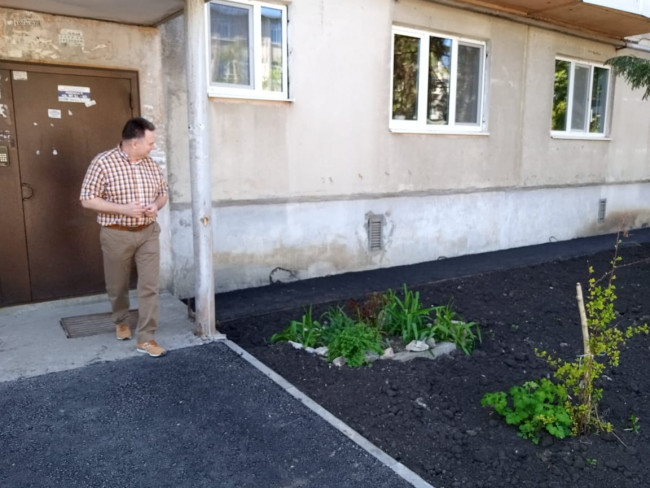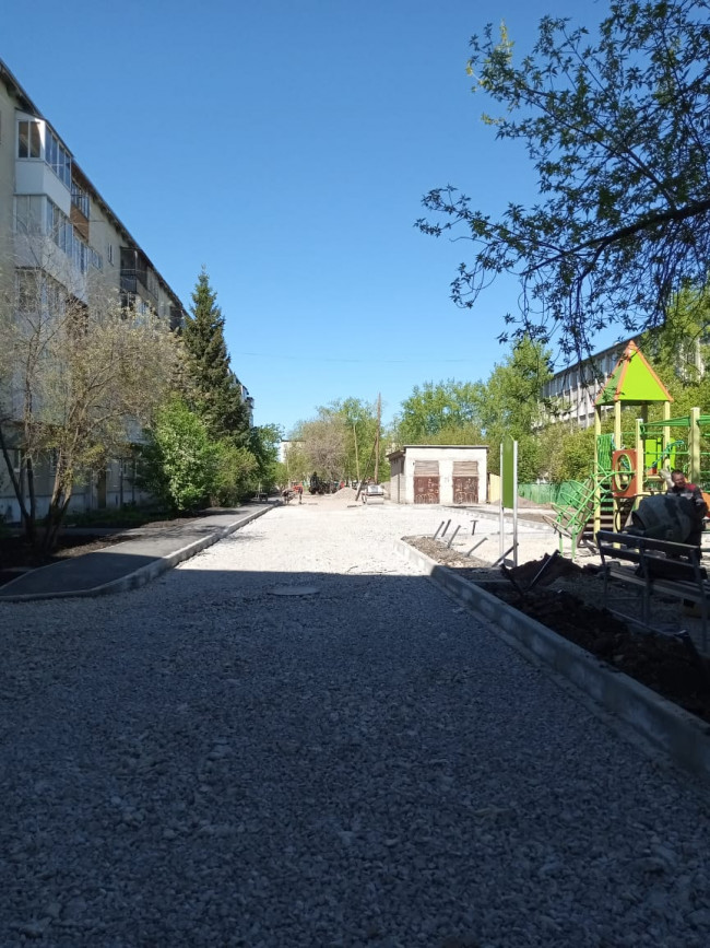 На Кирова, 9, работы в самом разгаре. Здесь трудятся техника и люди. Со дня на день будут укладывать асфальт на внутриквартальной дороге и парковке. Выходы из подъездов и тротуар готовы. Радует, что после чернения газонов, люди уже облагородили местные клумбы. Как говорится, вносят свой посильный вклад по ходу ремонта. Одновременно с подготовкой к укладке нового асфальта сотрудники Проспекта монтируют и детскую площадку. Одним словом, работа кипит. Но нет сомнения, что уже совсем скоро данная дворовая локация будет готова.