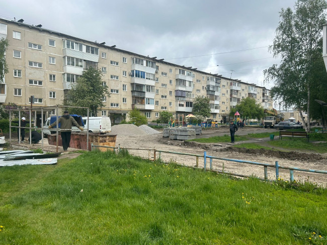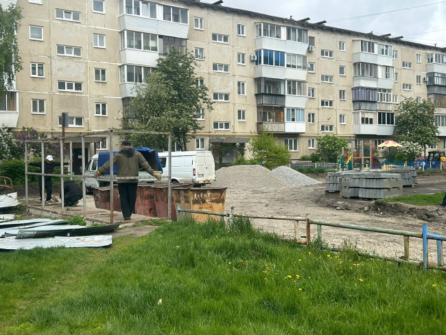 В настоящий момент в данной дворовой локации снят старый отслуживший свой срок асфальт, завезен щебень, готовятся к монтажу новые бордюры. Помимо внутриквартальной дороги ремонтируют и контейнерную площадку. Старое ограждение подрядчик уже снял. По ходу работ установит новое, заасфальтирует зону покрытия. Новый объект для сбора мусора оборудуют крышей, «заточат» под евроконтейнеры. Одним словом, площадка станет удобной и современной. А еще свежий асфальт положат на местную парковку. Нет сомнения, что в ближайшем будущем данную территорию станет не узнать.