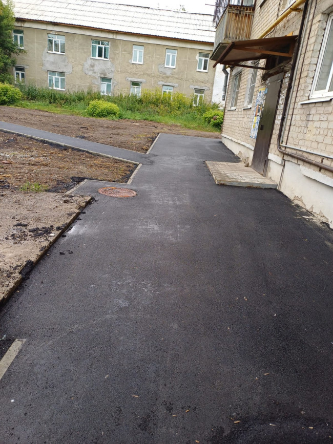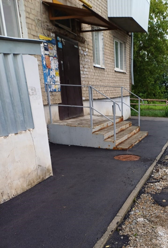 Дом небольшой. Это двухподъездная четырехэтажка. Она была построена в 1962 году. Ее жители попросили управляющую компанию обратить внимание на тротуар, который стелется вдоль их многоквартирника. В июле подрядчик КУДЕЗ ремонт провел, а еще положил новый асфальт на прилегающую к данному тротуару тропинку. Работами жильцы остались довольны.