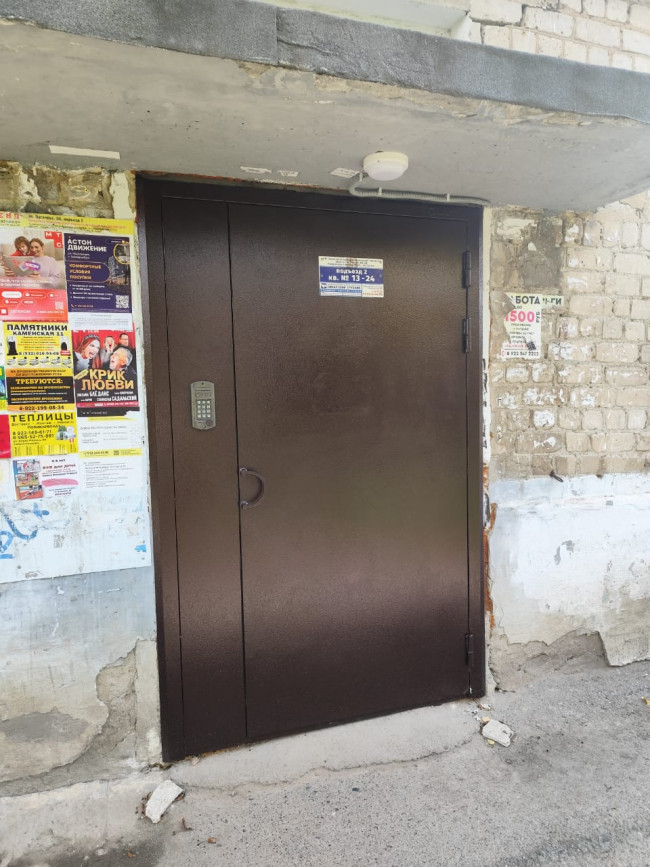 Подрядчику «КУДЕЗ» было дано задание покрыть подъездные двери молотковой краской. Она в последнее время используется все чаще. Но поводом для применения подобного материала, как правило, служат не вандальные действия, а необходимость улучшения внешнего вида входных конструкций. На Пугачева двери были в отличном состоянии, но вандалы решили использовать их в качестве холстов для своих «картин».