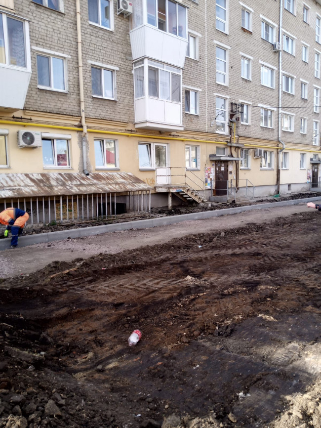 Ремонт полным ходом кипит на проспекте Победы, 34 и Кунавина, 15. Это соседние дома. Можно смело говорить, что на этом участке производится комплексное благоустройство. Задачи перед подрядчиком стоят прежние — обустроить дороги, парковки и тротуары.