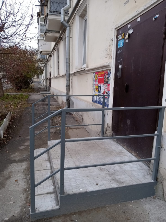 При ремонте учитывали местный ландшафт и пожелания жителей. Собственники третьего подъезда, например, попросили с обеих сторон ступенек установить удобные поручни. Чтобы было комфортно заходить в подъезд. Остальные собственники от подобных конструкций отказались. Количество ступенек у крылечек разные. В третьем две, в остальных - по одной. Это особенность местности.