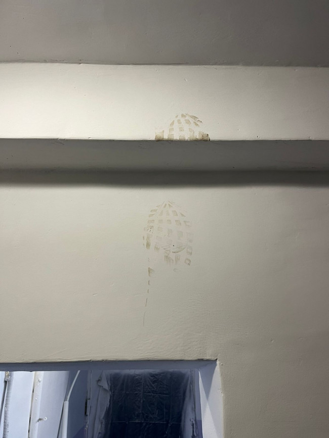 Вот только чистые стены некоторых не смогли оставить равнодушными. Уже на следующее утро после приемки под самым потолком ремонтники обнаружили грязные следы от ботинок. Понятно, что оставили их специально. Кто-то не поленился, снял обувь и оставил ею следы на стене. Зачем? Сказать об этом сложно. Виновник хулиганства найден не был.