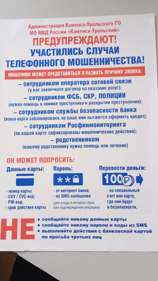 За текущий год жители нашего города перечислили мошенникам более 90 миллионов рублей. Эту цифру на встрече с представителями управляющих компаний озвучил врио начальника полиции МО МВД России "Каменск-Уральский" подполковник Григорий Пушкарев. Профилактика в при таком положении дел играет очень большую роль.