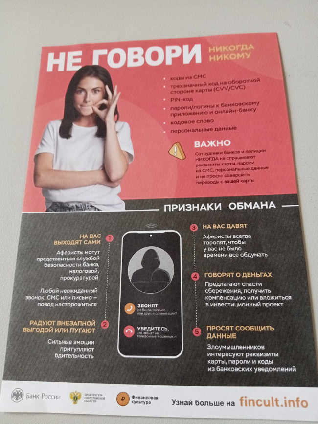 Соответствующая просьба на днях пришла из Прокуратуры. Данное надзорное ведомство попросило распространить среди населения информационные буклеты, призванные помочь людям понять, что с ними на связь вышли преступники.