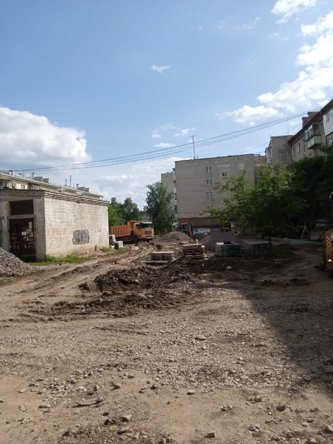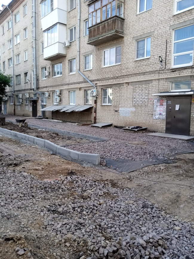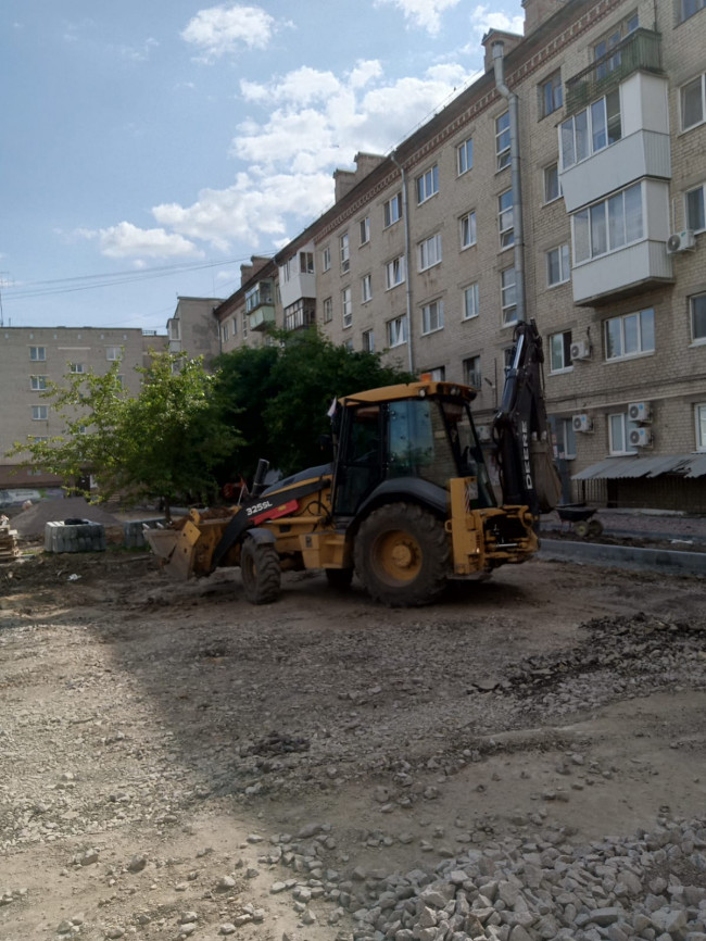 Работы стартовали в коробочке домов по Карла Маркса, 36, 38, 40, а также проспекту Победы, 66. Безусловно, пока в этой дворовой локации картина не самая привлекательная: ремонт кипит. Зато после окончания благоустройства это будет еще один образцово-показательный двор.