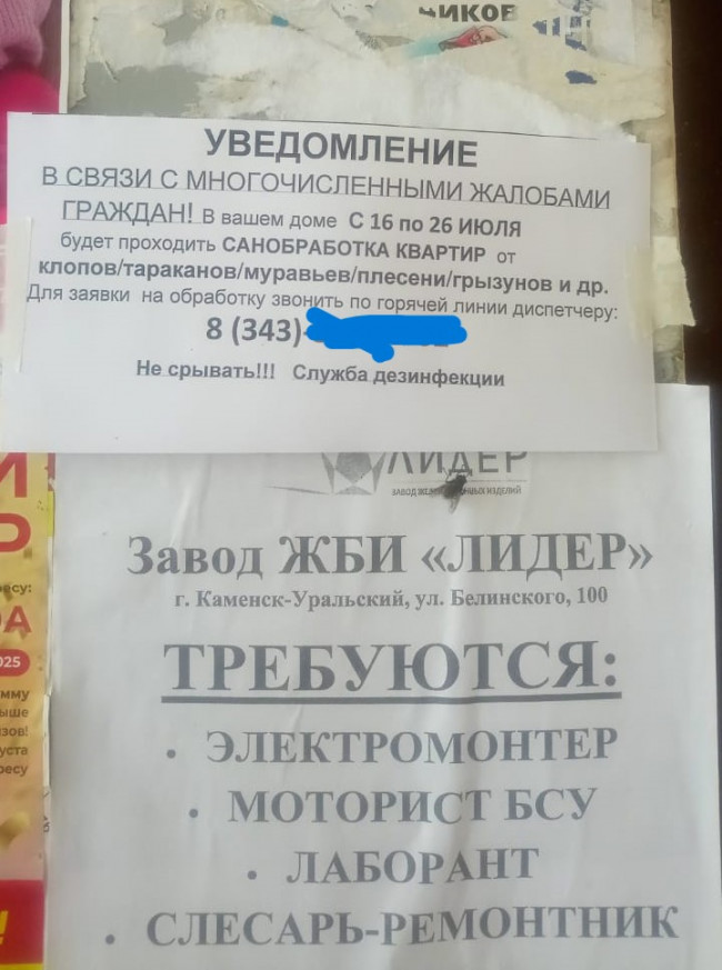 Радует, что все больше каменцев перестают быть доверчивыми. На объявления реагируют правильно. Звонят в управляющую компанию и задают соответствующие вопросы. Еще раз напоминаем, какие-либо работы, не связанные с общедомовым имуществом, ложатся на плечи самих собственников. Но мастеров для их проведения люди выбирают сами. И сами договариваются о сроках проведения работ и их стоимости. Подобные объявления — это обычный маркетинговый ход. Если у жильцов с насекомыми никаких проблем нет, реагировать на объявления не следует. И убрать их с информационного стенда также никто не запрещает.