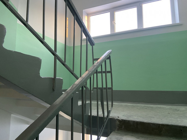 Один из примеров, дом № 22 по улице 16-й годовщины Октября. Он относится к жилищному участку № 2. Это самая окраина Трубного поселка, так называемый Шанхай. Многие каменцы вообще не в курсе существования данной улицы. Сейчас в этом МКД по заданию КУДЕЗ идет ремонт подъездов. Многоквартирник достаточно большой. Это шестиподъездная пятиэтажка. Она была построена в 1980 году. Ремонт запланирован во всех подъездах. В двух из них уже завершен. В остальных в процессе. Специалисты производственного отдела работы в готовых парадных приняли. Качество порадовало. Если говорить о цветовой палитре, люди не стали экспериментировать, остановились на модном сегодня цвете морской волны в паре с серым.